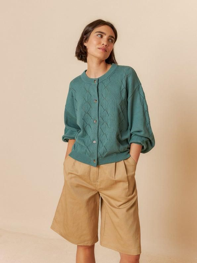 Gilet en maille fantaisie, côtelés sur le col, les poignets et l'ourlet, la coupe courte et carrée assure un look décontracté et contemporain.