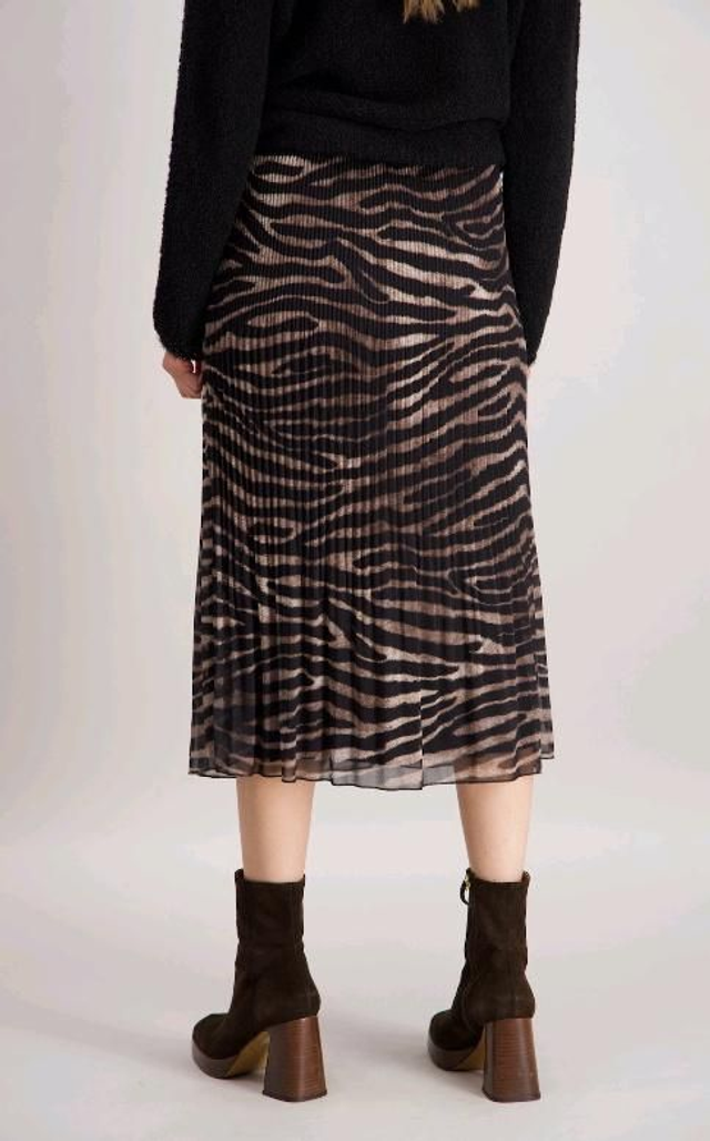 Jupe imprimée zèbre plissée, élastiquée à la taille et doublée