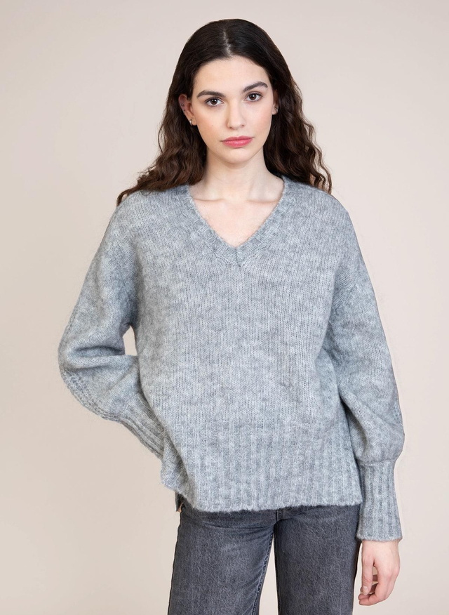 Pull épais pour une chaleur optimale, coupe large et légèrement évasée, encolure en V élégante et intemporelle, texture douce et agréable au toucher