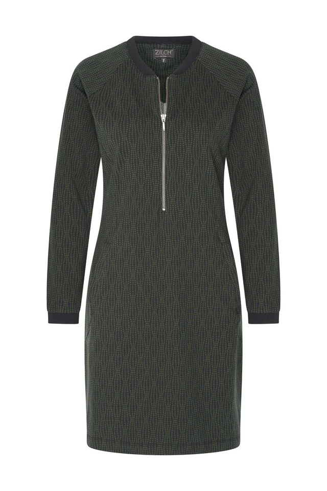 Robe courte, ajustée, manches longues, des poches et une fermeture éclair en métal.
