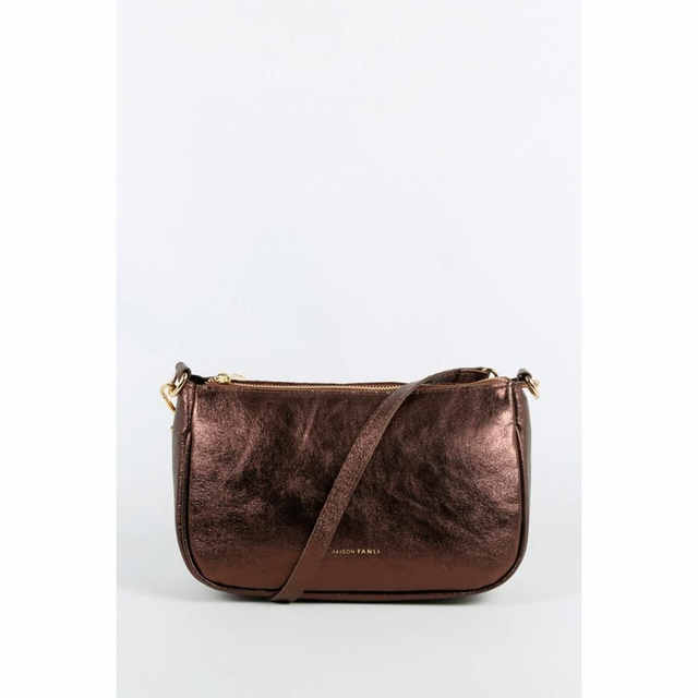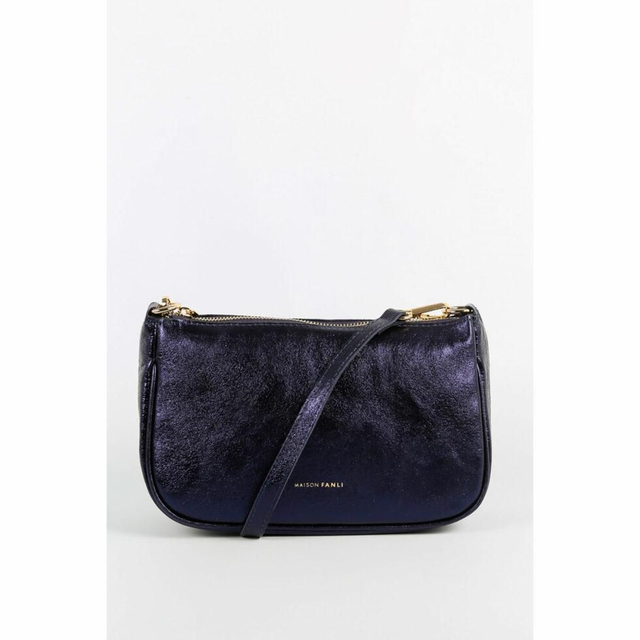 Sac en cuir vachette fermé par une fermeture éclair, bandoulière non réglable , une seconde bandoulière avec longueur réglable, une poche intérieure à fermeture éclair et deux poches