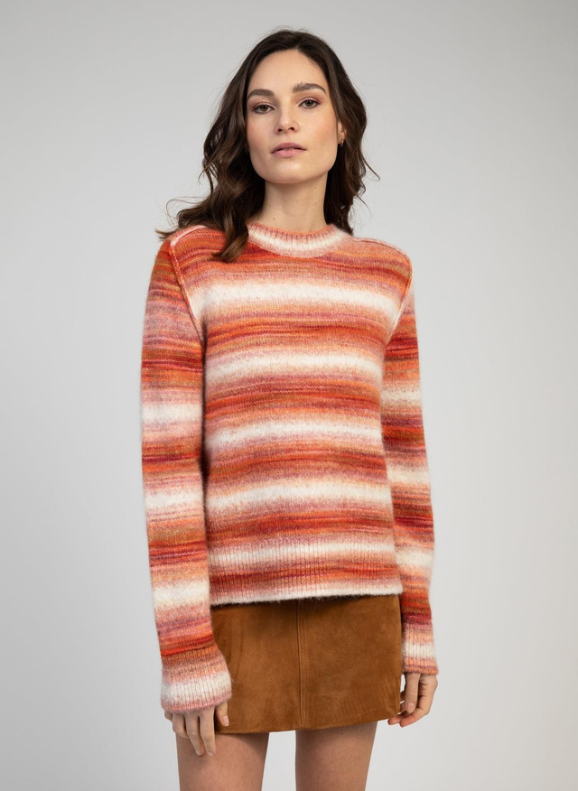 Pull rayé col rond , très chaud et moelleux, emmanchure raglan